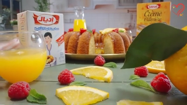 فخلط كهربائي، نديرو البيض، اللح و 2 ساشيات ڤانيليا اديال، 150 غ السكر، الزيت، 200 مل عصير البرتقال و