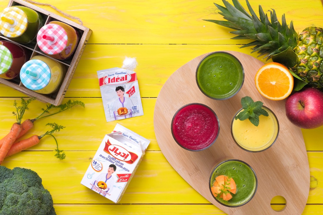 - Panaché: باش نوجدو الباناشي ديالنا، كنستعملوا بحال هاد النوع ديال المغرفة، آو معلقة. نديروها فالكأس، و نبداو بالعصير الآحمر للي كنخويوه عليها شوية بشوية. من بعد، نخويو العصير الآصفر، و العصير الآخضر بنفس الطريقة باش نحصلو على طبقات مفارقة.