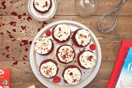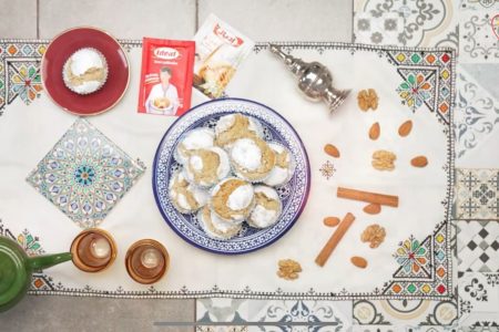 من بعد ما درنا الخضرة مشحرة فزلافة، فإيناء نخلطو البيض، الكريمة، الإبزار، معلقة صغيرة من دقيق الذرة الممتازة مايزينا إديال، خميرة الحلويات إديال..